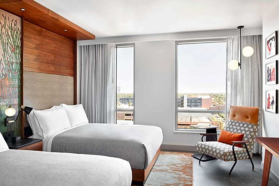 Two on-site dining options spice up the day and night. Alter Ego serves Modern American cuisine in a sleek setting, while Alibi Rooftop Lounge brings a Modern, Romantic vibe with American bites and cocktails. A sun deck and terrace invite al fresco dining and relaxing with a view of the humming streets of Tempe.
